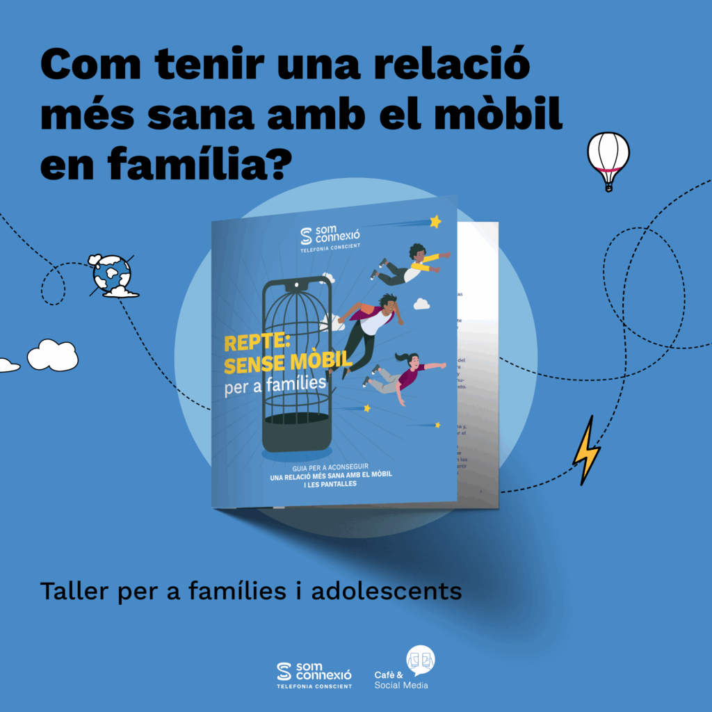 El taller Repte: sense mòbil per a famílies proposa un espai de reflexió col·lectiva per preparar-se abans d’iniciar el repte familiar de desconnexió temporal que recull la guia. Com fareu aquesta desconnexió familiar? A través de dinàmiques participatives, es treballen qüestions com l’impacte dels dispositius en la vida quotidiana i les relacions familiars, la contextualització de l’etapa adolescent, l’autocrítica compartida sobre els usos digitals de cadascú i la planificació del repte amb compromisos clars per a tots els membres. Al fulletó informatiu del taller hi trobareu tota la informació.